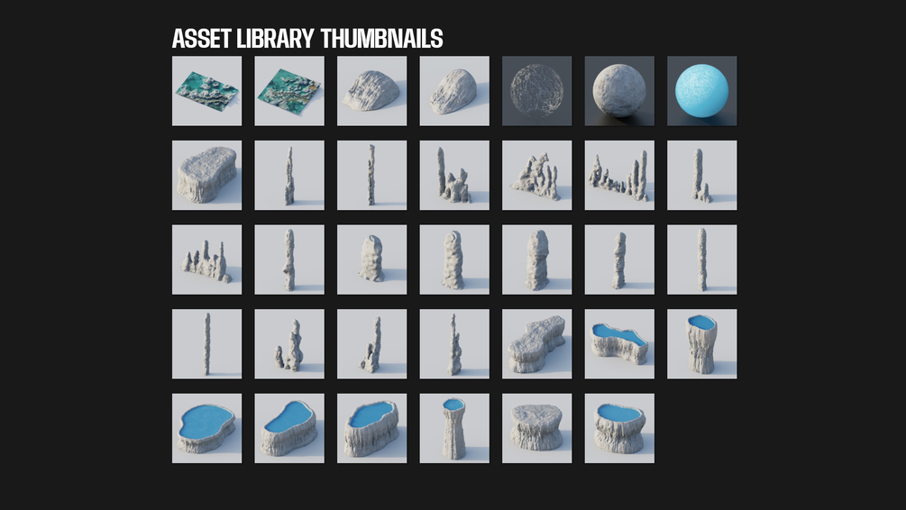 This modular 3D asset pack was built for Blender and is perfect for crafting surreal terrace pool environments. Each terrace pool also comes with a built-in realistic procedural water shader / caustics shader, fully customizable and ready to go straight out of the box.