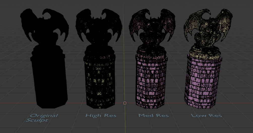 - Multiple resolutions (High, Medium and Low poly)